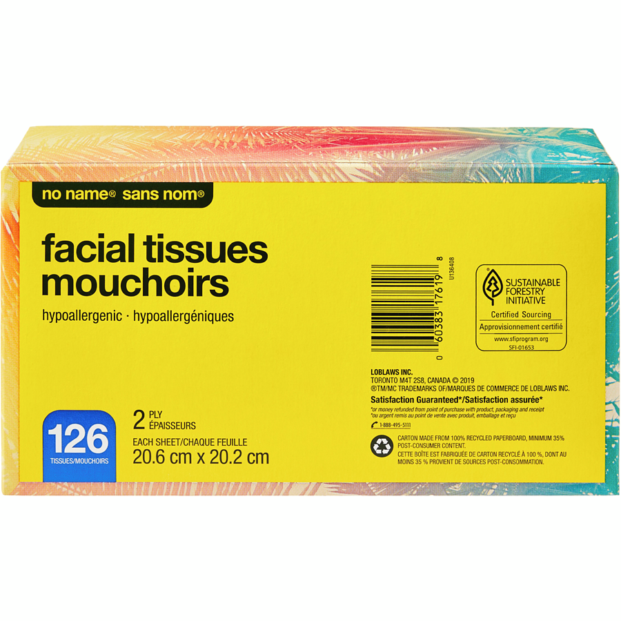 Facial Tissues 2 Ply 126 Pack is a household essential. This package includes 126 hypoallergenic tissues that are perfect for blowing your nose, cleaning everyday messes, and facial blotting.