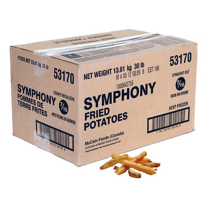 Canada grade A potatoes. Potatoes are brined for enhanced flavour 7/16-in regular-cut fries 6 × 2.27 kg (5 lb) bags. Keep frozen